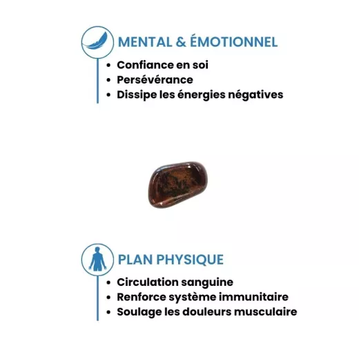 L'Œil de Taureau est une pierre naturelle caractérisée par ses nuances de rouge et de brun. Son apparence est similaire à l’œil d’un taureau. Elle possède des vertus physiques et aide à améliorer le système immunitaire et la circulation sanguine. Elle favorise également les énergies positives.