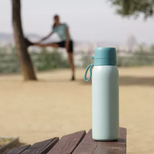 La gourde filtrante TappWater d'une capacité de 750 ml est conçue pour vous accompagner partout, en voyage, en randonnée, au travail ou à la salle de sport. Fabriquée en acier inoxydable, elle permet de filtrer l'eau du robinet et d'éliminer plus de 80 contaminants. Vous profitez ainsi d'une eau pure et qui reste au frais pendant 24h. En outre, la gourde à filtre TappWater vous permet d'économiser environ 500 bouteilles en plastique par an. Un geste positif pour la planète et pour votre portefeuille ! La bouteille filtrante est fournie avec un filtre qui dure jusqu'à deux mois.