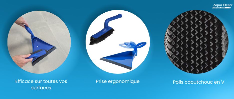 Kit ramasse poussière avec ramassette et brossette en caoutchouc Heva