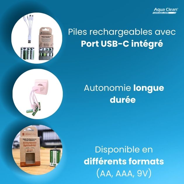 Fini les piles jetables ! Nos piles avec chargeur intégré sont une solution alternative qui offre de nombreux avantages :