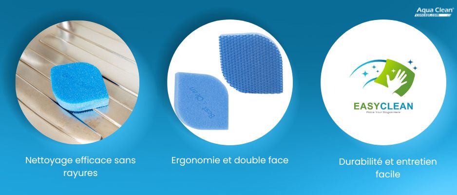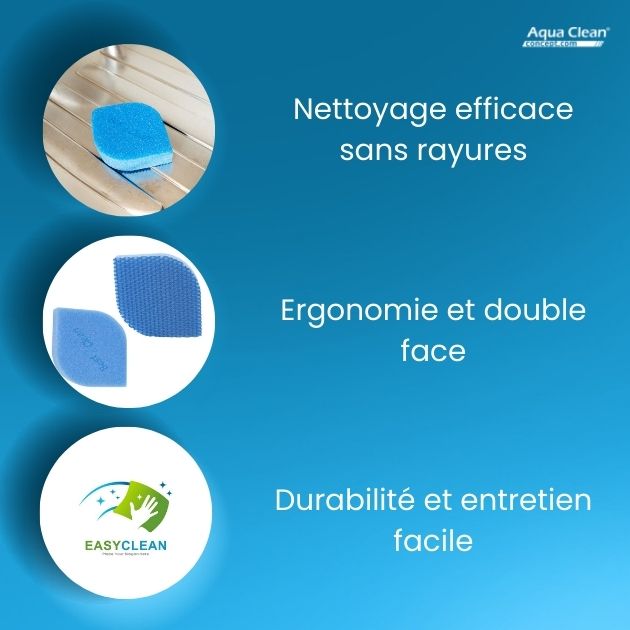 Cette éponge grattante prévue pour la cuisine et la vaisselle a l’avantage de ne laisser aucune trace et surtout, elle ne griffe pas ! Sans rayer, vous pourrez dire adieu à la saleté sur vos meubles, votre plan de travail ou votre vaisselle ! Inspirée des éponges professionnelles destinées aux restaurants et au secteur alimentaire, l’éponge vaisselle grattante proposée par Aqua Clean Concept possède un rapport qualité/prix adapté aux besoins du particulier !