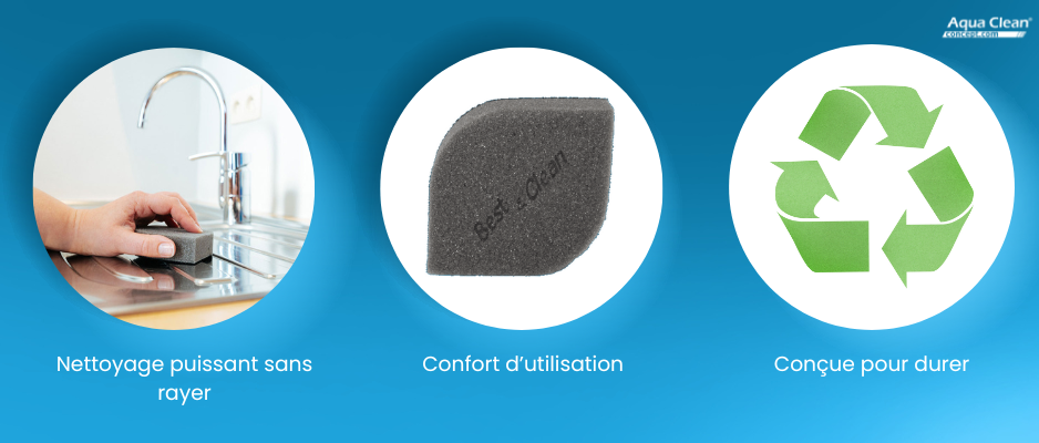 Cette éponge grattante antigriffe est très efficace lorsqu’elle est utilisée avec des produits d’entretien naturels comme le bicarbonate de soude, le vinaigre ou le vinaigre en gel.