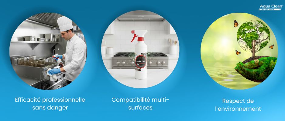 Ce produit combine la performance d’un nettoyant professionnel avec la praticité d’un spray prêt à l’emploi, sans compromis sur la sécurité.